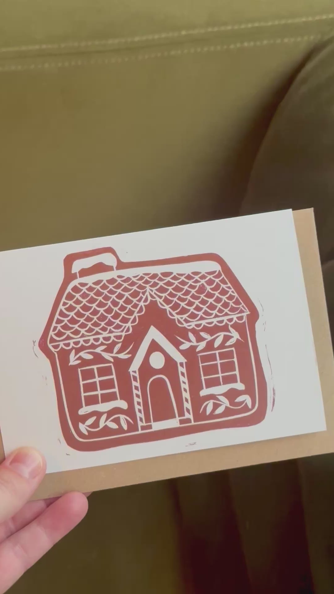 Ideal for print enthusiasts, and those seeking unique handmade Christmas cards, this gingerbread house lino print card is a delightful way to share heartfelt greetings while supporting independent artists.
